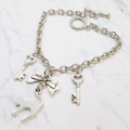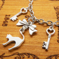 猫、リボン、鍵という女の子の心をくすぐるモチーフを組み合わせた、華やかで物語性のあるブレスレット