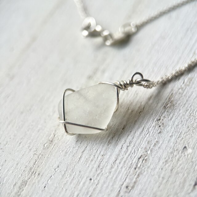 《Silver925》純粋な気持ちになれるホワイトシーグラスのネックレス 45cm