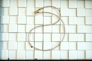 こちらのネックレスはナイロンコートワイヤーというソフトタイプのワイヤーに石を通しております。張りが出て美しい弧を描きますが、強い力を加えて曲げたりなさいますと、曲がったままの状態になってしまう恐れがございますので、自然に丸まった状態で保管いただきますよう、お願いいたします。