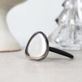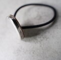 TH86 美濃焼 ハンドペイント 白金(プラチナ)絵付けタイルのヘアゴム【 裏面レザー加工 】