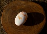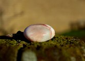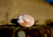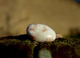 真っ白な表面に、濃淡のピンクの美しい針状結晶が見られます。とても希少なパームストーンです。