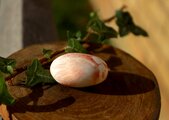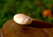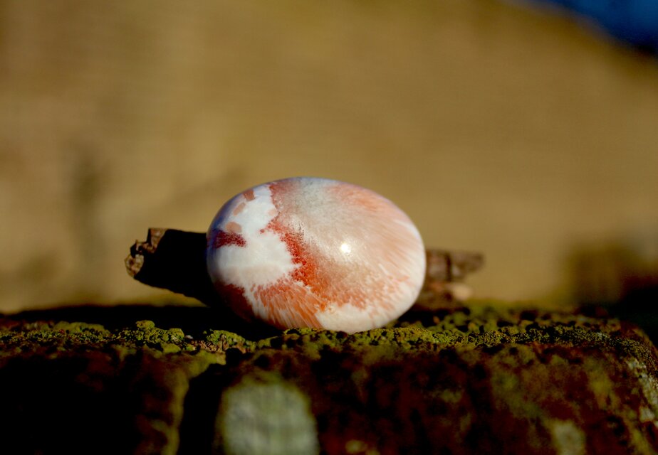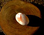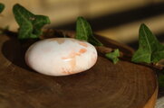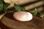 小さめですが、非常に美しいピーチスコレサイトのパームストーンです。
