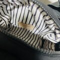 裏地は手描き風なストライプがかわいいバティックプリントのコットン生地です。ポケットひとつついています。