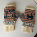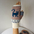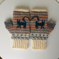 指先がない使い勝手の良い 軟らかくて暖かく肌にチクチクしない糸で編んだハーフミトンはいかがでしょうか?