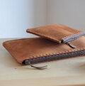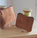 フラットジップポーチ スエード Mサイズ カスターニャ