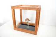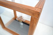 3cm角の杉材に溝を掘り、3ミリ厚のフロートガラスを挟んで組み立てています。