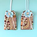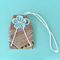 素敵なお守り袋が2つ届きました。 絞りの生地の色合いと大輪の花がとても華やかでキュートです。 白梅のものは、奥ゆかしさと気品を感じました。 どちらも大変気に入りました。大切に使わせていただきます♪