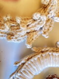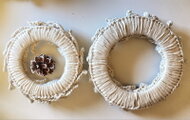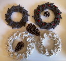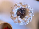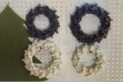 オーナメントは目打ちなどで編み目を少しずつ広げ差し込んでください。ワイヤーの長さを2cmぐらいにすると差し込みやすくなります。