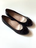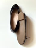 上質なツヤ感で足元を上品に魅せる、エナメルバレエシューズ。