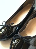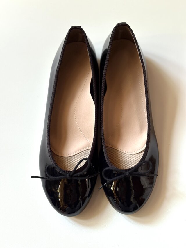 大人シンプル エナメルリボンバレエパンプス ブラック デイリーも通勤も◎
