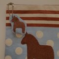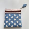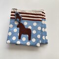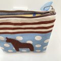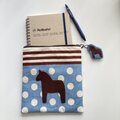 ドット柄の手帳ポーチです。内袋はシャンブレー、ダーラナホースのアップリケ、チャーム付きです。中厚の接着芯を貼っていますのでしっかりしています。