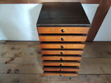 黒い八角形の取手が八個並ぶ八杯の引出。