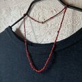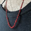 赤いビーズを焦茶のロウ引きに通して保管しています。