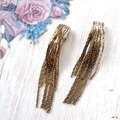 上から覆い被さる様に段々に垂れ下がった束になったゴールドメタルのチェーンが揺れるデザインのヴィンテージイヤリングです。