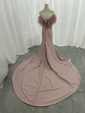 カラードレス 薄ピンク オーストリッチ マーメイドライン ロングトレーン くるみボタン 快適な生地 前撮り