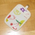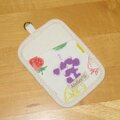 生成地にカラフルなフルーツが描かれた生地に生成の無地を合わせました。