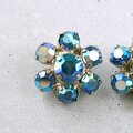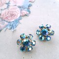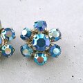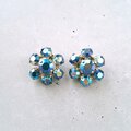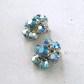 blue aurora glass rhinestone flower ヴィンテージイヤリング