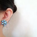 ブルーのオーロラガラスラインストーンがフラワーの形にデザインされたヴィンテージイヤリングです。