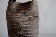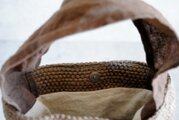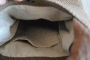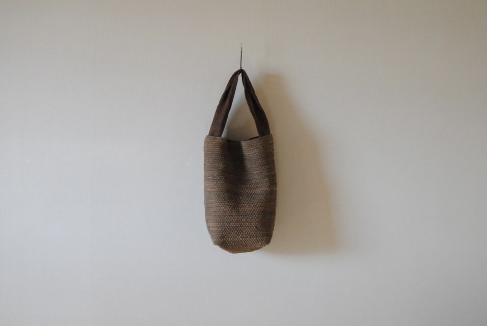 持ち手は巾広に作り、裂き織りと同じ柿渋染めをしています。