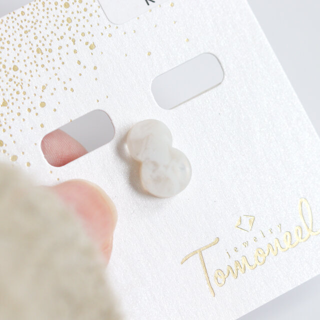 雪だるまのような形とあいまって、眺めているとちょっとほっこりするような優しいピアス。