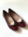 大人シンプル エナメルリボンバレエパンプス ワイン デイリーも通勤も◎