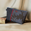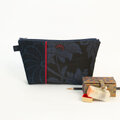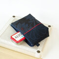 大島や他正絹紬・絣などを切り替えてオシャレに細いラインで締めました手作りポーチです。柄物の生地は表側で良い柄が出るようにしておりますので反対面は成り行きです。内袋は和柄の木綿地や胴裏・八掛などを使っています。細いラインは白大島を手染めでムラ染めにしたものをバイアステープに仕立てております。金茶ライン・赤ラインは正絹八掛をバイアスにしております。