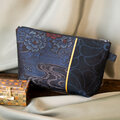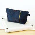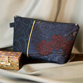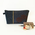 大島や他正絹紬・絣などを切り替えてオシャレに細いラインで締めました手作りポーチです。柄物の生地は表側で良い柄が出るようにしておりますので反対面は成り行きです。内袋は和柄の木綿地や胴裏・八掛などを使っています。細いラインは白大島を手染めでムラ染めにしたものをバイアステープに仕立てております。金茶ライン・赤ラインは正絹八掛をバイアスにしております。