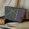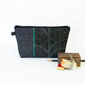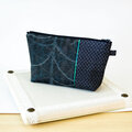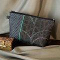 大島や他正絹紬・絣などを切り替えてオシャレに細いラインで締めました手作りポーチです。柄物の生地は表側で良い柄が出るようにしておりますので反対面は成り行きです。内袋は和柄の木綿地や胴裏・八掛などを使っています。細いラインは白大島を手染めでムラ染めにしたものをバイアステープに仕立てております。金茶ライン・赤ラインは正絹八掛をバイアスにしております。