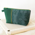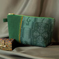 G-401大島紬切り替えポーチ/金茶ライン×緑大島