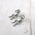 1935年にアメリカのロードアイランド州プロビデンスにて設立された「Jonette Jewelry Company」(通称J.J.、JJ)の体の部分がキャッチになった着けると耳から飛び出している様に見えるカエルがデザインされた、シルバートーンのピューター製のヴィンテージピアスです。