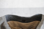 手染めの煤は深い色合いを生み出し、裂き織りの特性が生かされた丈夫さを併せもっています。持つごとに手に馴染み、愛着あるバッグに育ちます。