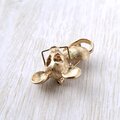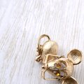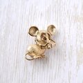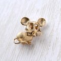 1886年アメリカのニューヨークにて小さな香水会社を創業、1971年に本格的にコスチュームジュエリーの製作を開始したAvon(エイボン)の1973年に販売された“Spectacular Mouse”の瞳にトパーズカラーのラインストーンがあしらわれた上下に動く可動式のメガネをかけたゴールドメタルの小さなネズミのヴィンテージブローチです。