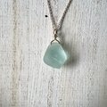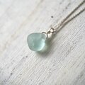 《Silver925》海の一雫 小さな空色シーグラスビーズのネックレス 45cm