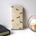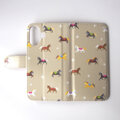 お馬さんが翔け回るちらし模様の手帳型スマホケースです。