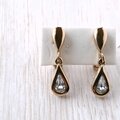 1886年アメリカのニューヨークにて小さな香水会社を創業、1971年に本格的にコスチュームジュエリーの製作を開始したAvon(エイボン)の1976年に販売された“Birthstone Teardrop”の誕生石をイメージしたオーストリアガラスラインストーンがあしらわれたティアドロップが揺れるデザインのヴィンテージイヤリングです。