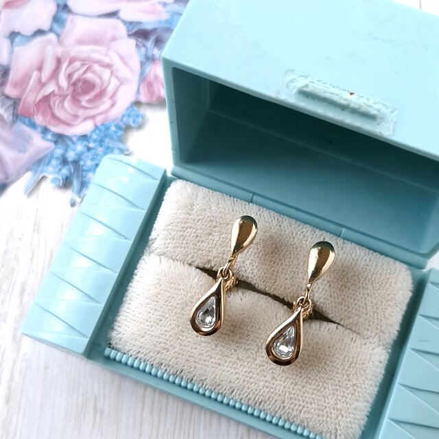 《Avon》 “Birthstone Teardrop” April エイボン ヴィンテージイヤリング