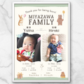 【データ納品】写真入り命名書ポスター (兄弟 姉妹用)メモリアルベビーポスター / アニマル 出産祝い くま ケーキ うさぎ