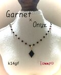 14kgf メガネ留めガーネットとブラックオニキスのネックレス