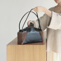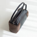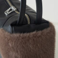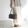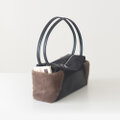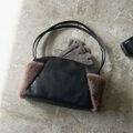冬新作 PUxふわポケット ロングハンドルバッグ【ブラックxマロンブラウン】軽やかで収納力 オンオフ兼用