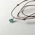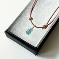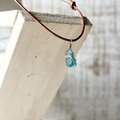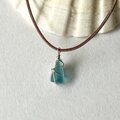 小さなシーグラスの本革ネックレス~Silver925×海色~