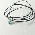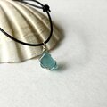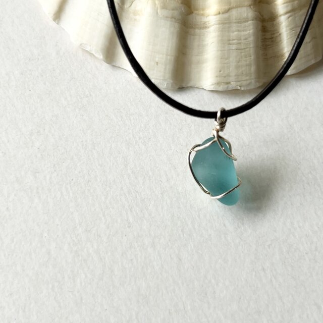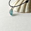 小さなシーグラスの本革ネックレス~Silver925×海色~