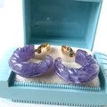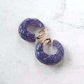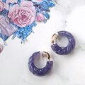 1886年アメリカのニューヨークにて小さな香水会社を創業、1971年に本格的にコスチュームジュエリーの製作を開始したAvon(エイボン)の1982年に販売された“FLORAL HOOP”のアメジストトーンのプラスチックにリーフの模様が刻まれたフープタイプのヴィンテージイヤリングです。