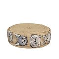 インド刺繍リボン50cm切り売り キャットフェイスM イエロー 3.5cm幅 HC 猫 ねこ R-0795
