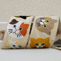 インド刺繍リボン50cm切り売り キャットフェイス ベージュ 5.6cm幅 HC 猫 ねこ R-0799