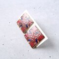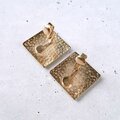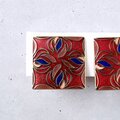 スクエア型のゴールドメタルにレッド、ブルー、桃色のエナメルで色付けされたオリエンタルな植物の様な模様が描かれた七宝焼のヴィンテージイヤリングです。