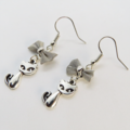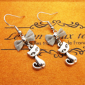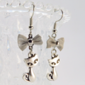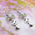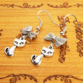 シルバーカラーに統一した猫とリボンの大人可愛いピアスです