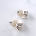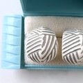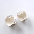 1886年アメリカのニューヨークにて小さな香水会社を創業、1971年に本格的にコスチュームジュエリーの製作を開始したAvon(エイボン)の1988年に販売された“sirocco hoop”のオフホワイトのプラスチックにグレーの線状の模様が施されたアフリカンスタイルのヴィンテージピアスです。