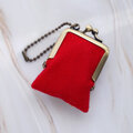 小さなビーズ刺繍のがま口 No.76|レッド×ウール|ネックレス・バッグチャームにも|アクセサリーケース|一点物