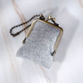 小さなビーズ刺繍のがま口 No.82|グレー×ウール|ネックレス・バッグチャームにも|アクセサリーケース|一点物