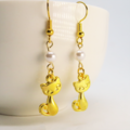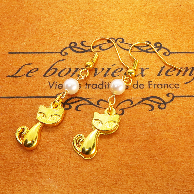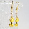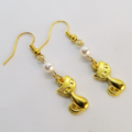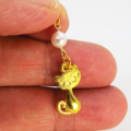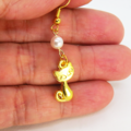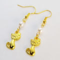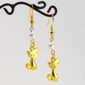 ゴールドカラーの猫モチーフとスワロフスキーパール(クリスタルホワイト)の大人可愛いピアスです